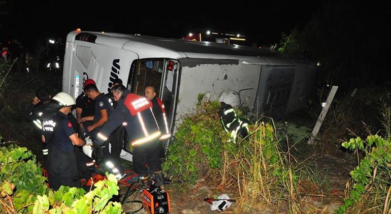 Otobüs devrilirken 4’ü personel 29 kişinin bulunmuş olduğu otobüste 15 yolcu yaralandı. İhbar üstüne bölgeye sağlık, itfaiye ve polis ekipleri sevk edildi. Yaralı 12 yolcu çıkarıldıkları otobüsten hastanelere sevk edilirken, araçta sıkışan 1’i gebe 3 yolcu, itfaiye ekiplerinin uzun uğraşı kararı sıkıştıkları yerden çıkarıldı. Manisa’daki hastanelere kaldırılan yaralıların sıhhat durumunun iyi olduğu öğrenildi.